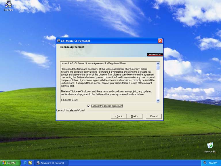Check the "I accept" box and choose Next.