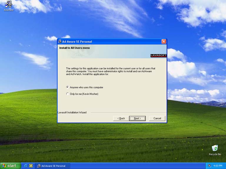 Make sure "Anyone who uses this computer" is selected and choose Next.
