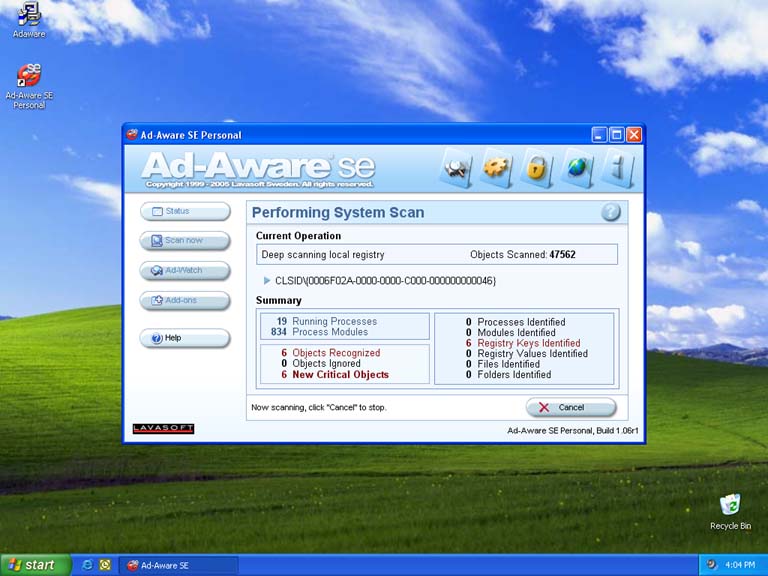 Once the update download and install is complete a scan of the system for spyware will automatically start and the screen below will be displayed. This scan will take anywhere between 15-45 minutes depending on how much is on you hard drive.