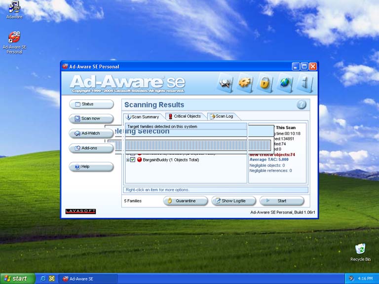 Select Perform smart system scan and choose Next to start scanning. The second scan should come up clean. This program should be ran every week or anytime the computer starts acting weird(such as lots of pop-up ads or running really slow) to removing any newly acquired spyware from the Internet. If problems persist and cannot be solved with this program contact a technician such as myself for repair.